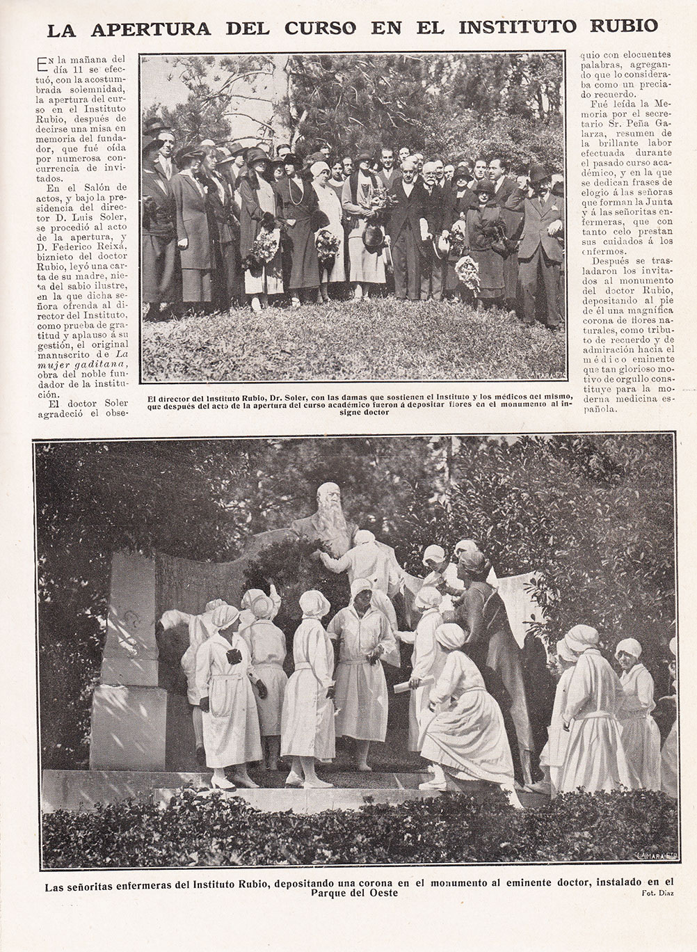 Apertura de curso en el Instituto Rubio. Junto al monumento dedicado a Federico Rubio en el Parque del Oeste