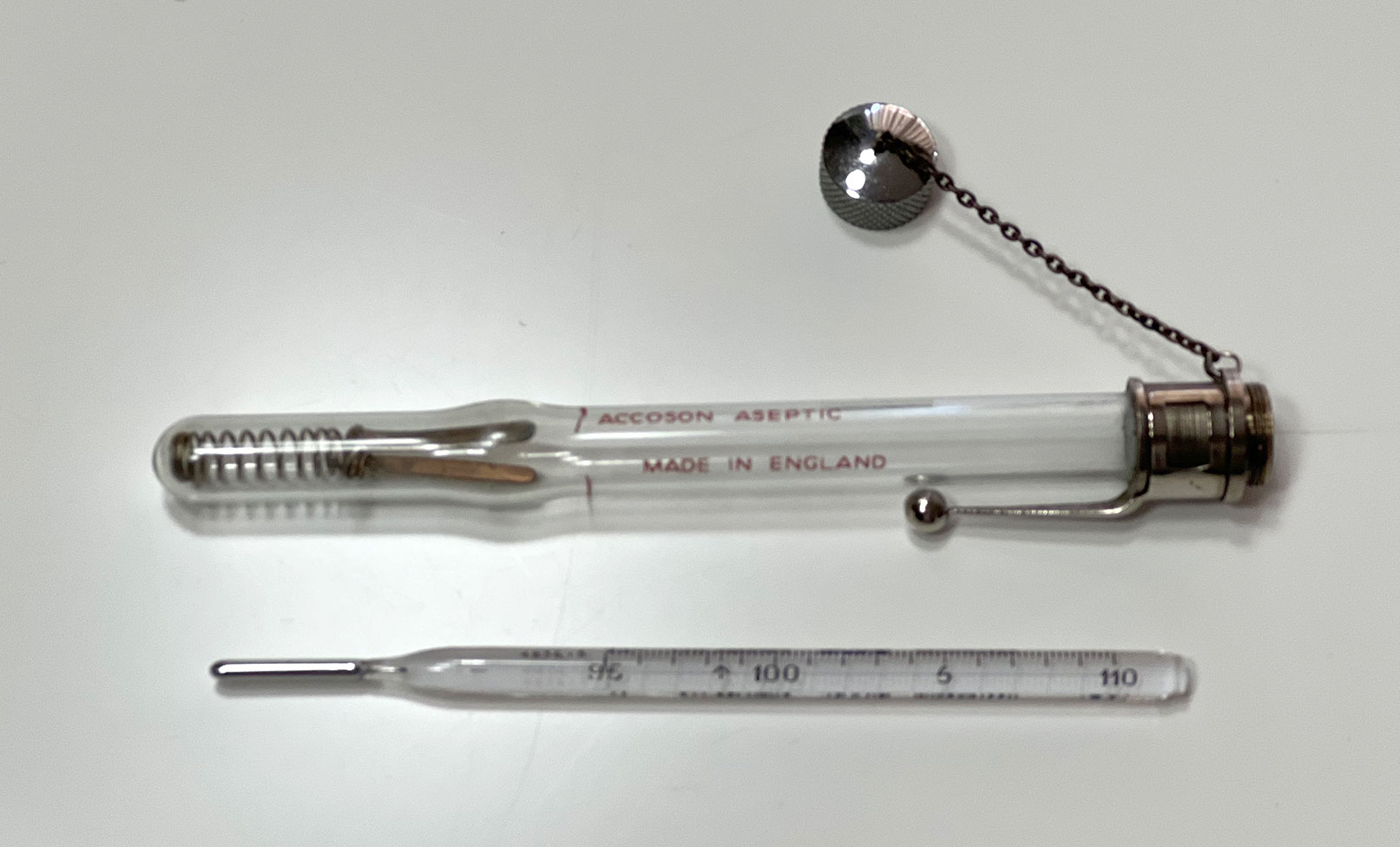 Temperatura. Termómetro inglés con funda de vidrio y metala rosca