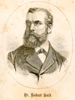 Grabado que muestra a Robert Koch, uno de los creadores de la moderna bacteriología (Biblioteca y Museo Historicomédicos. Universitat de València) |